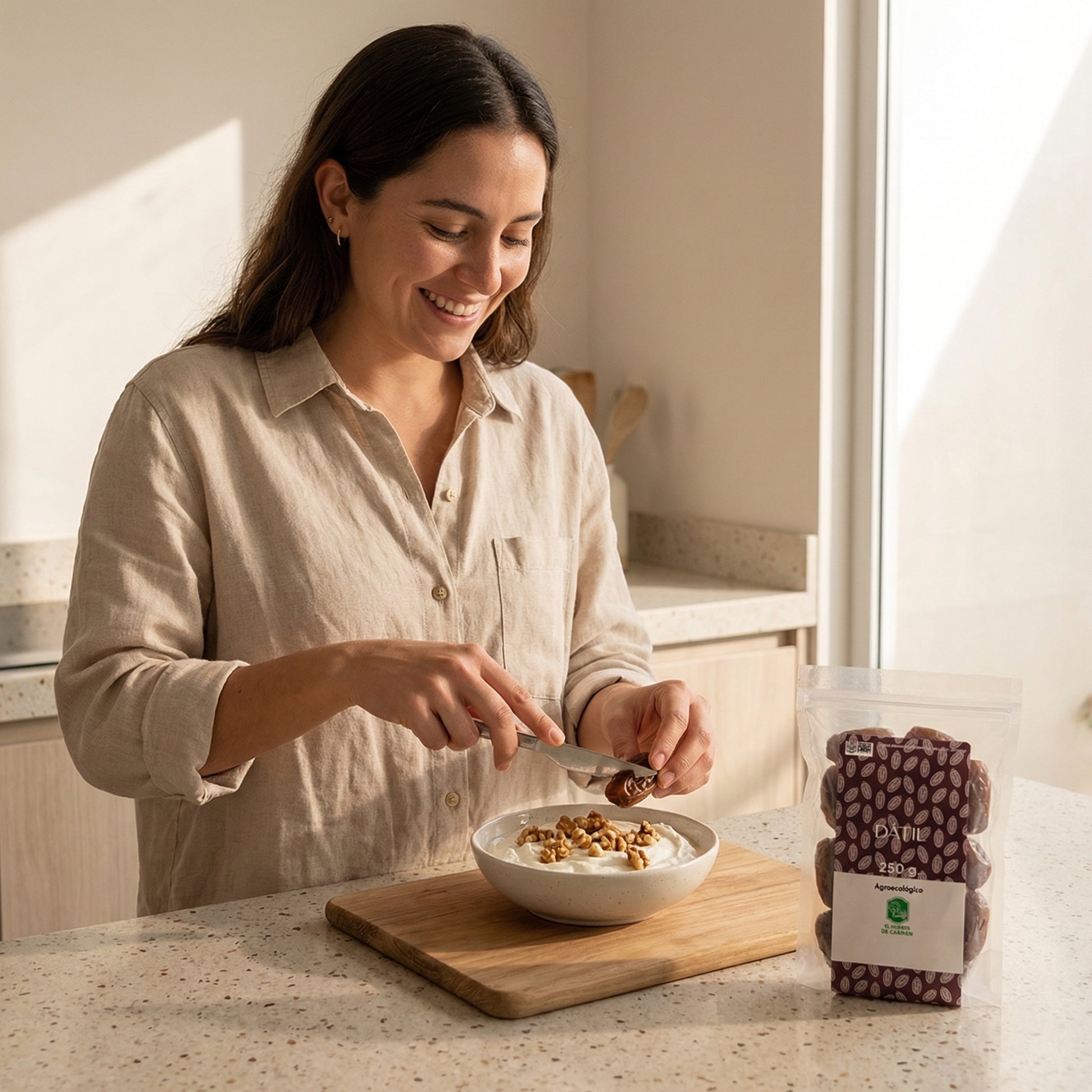 Es un producto súper versátil y rendidor: con unos cuantos dátiles puedes elevar una receta completa. Ideal para quienes buscan ingredientes reales y una alacena con opciones prácticas para el día a día 🌿.