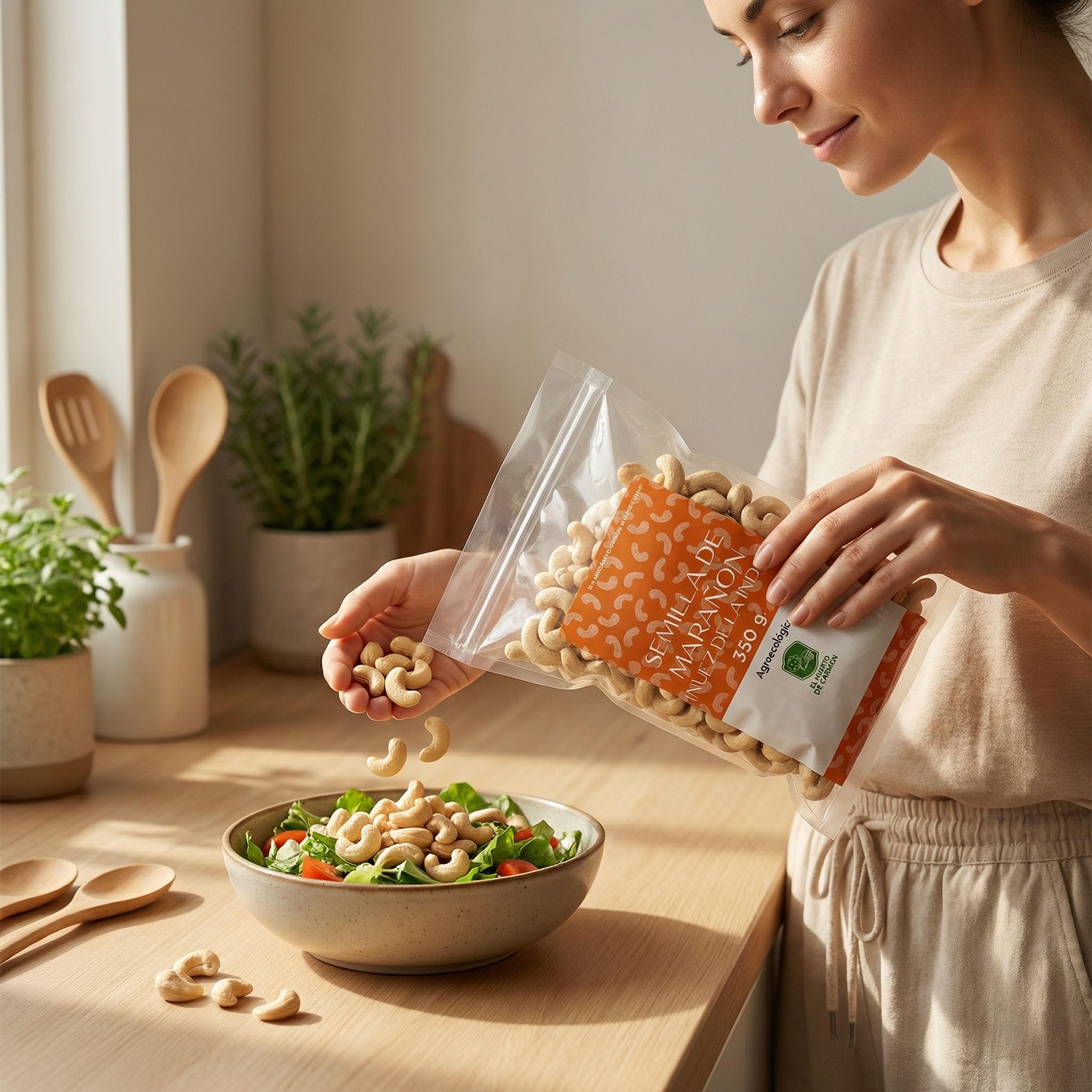 Gracias a su sabor delicado, la nuez de la india combina muy bien tanto en preparaciones dulces como saladas. Es perfecta para snacks, ensaladas, granola, repostería, salsas y recetas veganas, aportando textura, sabor y valor nutritivo a los platillos.